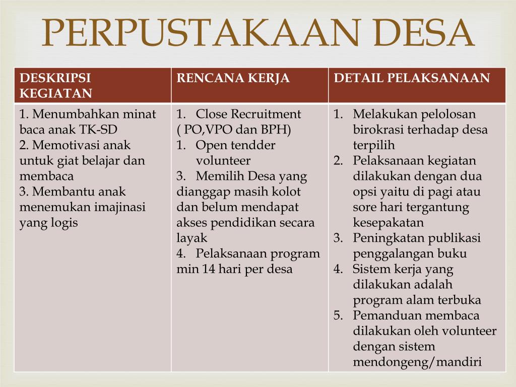 perpustakaan sd negeri 03 jetis berdiri tahun 2008/2009 (gedung baru) dengan ukuran luas gedung 56 m 2 , serta memiliki dua ruang di antaranya : program kerja tahunan kepala sekolah sd smp sma smk tahun 20202021 yang coba saya bagikan ini di buat dengan microsoft excel tentunya dapat bapak ibu edit sesuai kebutuhan. Proker dan kerjasama yang dilakukan oleh pustakawan perpustakaan sd n x sukoharjo periode 2013. Untuk itu dalam jangka pendek, menengah maupun panjang kami tidak hanya merencanakan taman baca ini untuk kegiatan membaca, tetapi kami juga merencanakan beberapa program. Organisasi karena perpustakaan merupakan unit kerja yang menyediakan